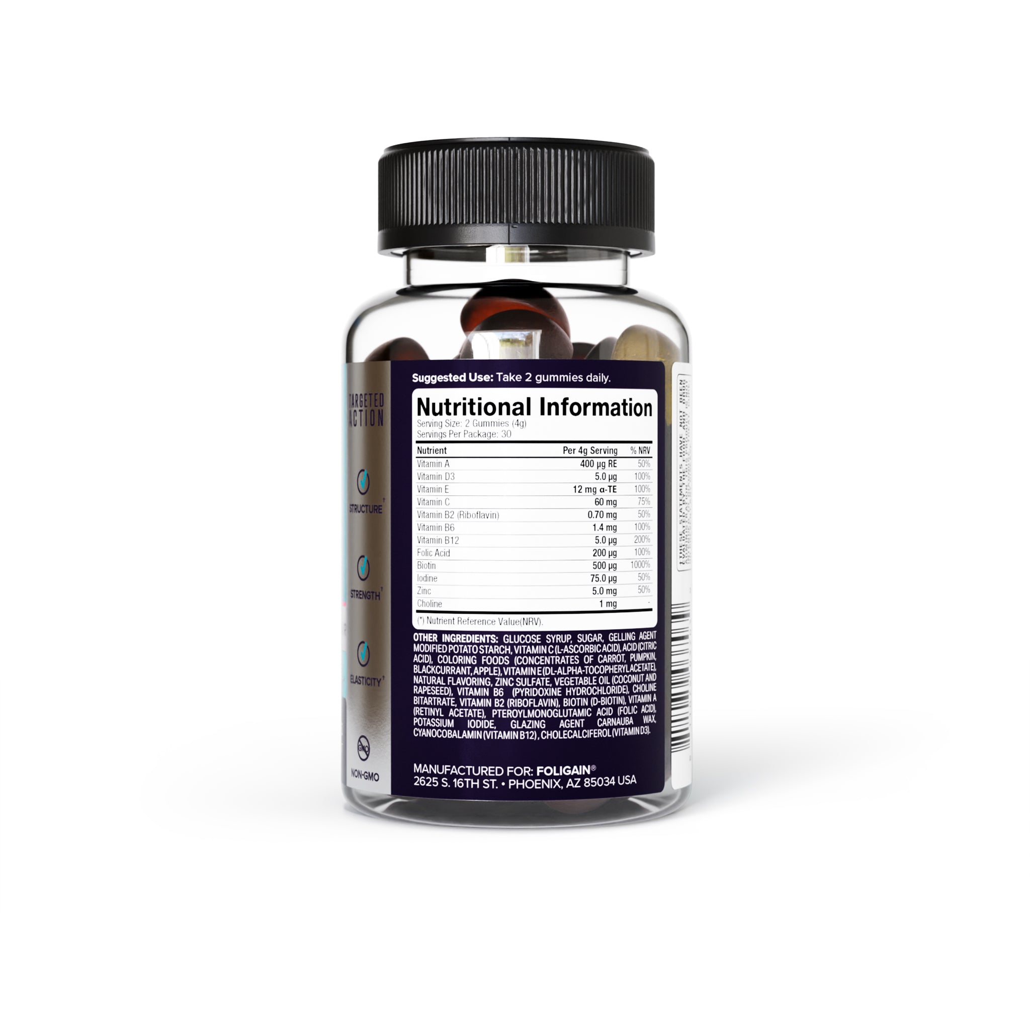 Otkrijte tajnu punije, jače i živahnije kose s ovom naprednom, bezlijekovnom formulom. FOLIGAIN® Hair Stimulating Gummies stručno su formulirane s mješavinom biotina, esencijalnih vitamina, minerala i specijalnih nutrijenata za njegu vlasišta, energiziranje folikula i potporu vidljivo zdravijem rastu iznutra. Ukusni voćni okusi čine dnevnu njegu kose jednostavnom i ugodnom.